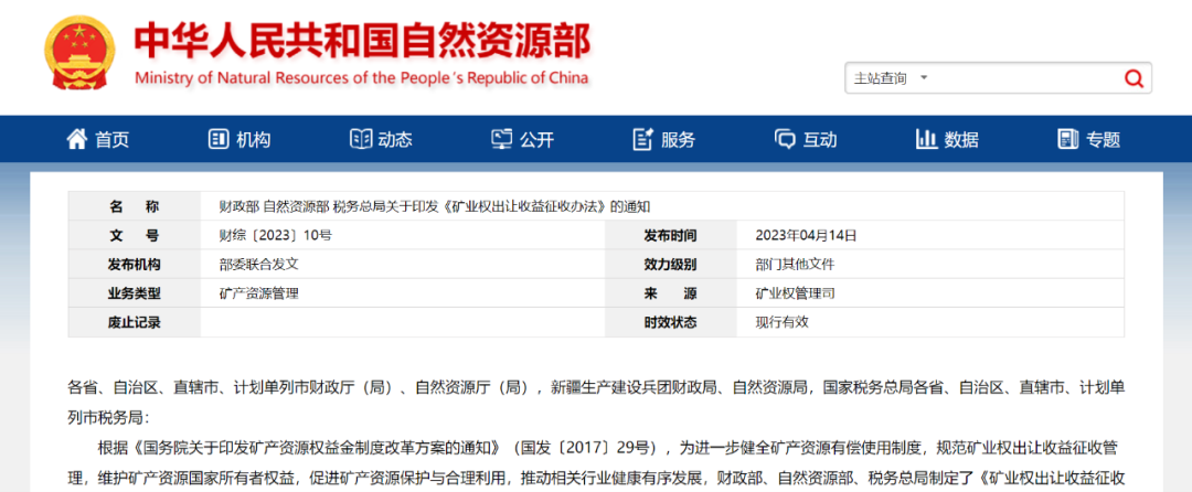 文章來源于:云南礦業(yè)律師,原文鏈接:礦業(yè)重大利好!35號文廢止,財政部 自然資源部 稅務(wù)總局印發(fā)《礦業(yè)權(quán)出讓收益征收辦法》
