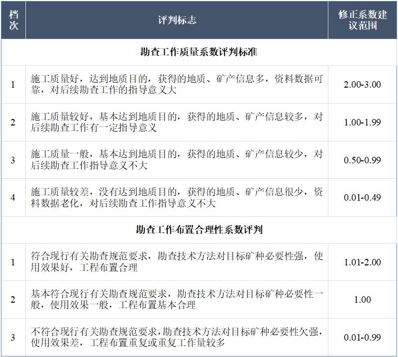 其次,確定勘查工作布置合理性系數(shù)。根據(jù)現(xiàn)行勘查規(guī)范的要求,對勘查工作布置的合理性、必要性和使用效果進(jìn)行評判,該項(xiàng)目經(jīng)評判賦值為1.10;