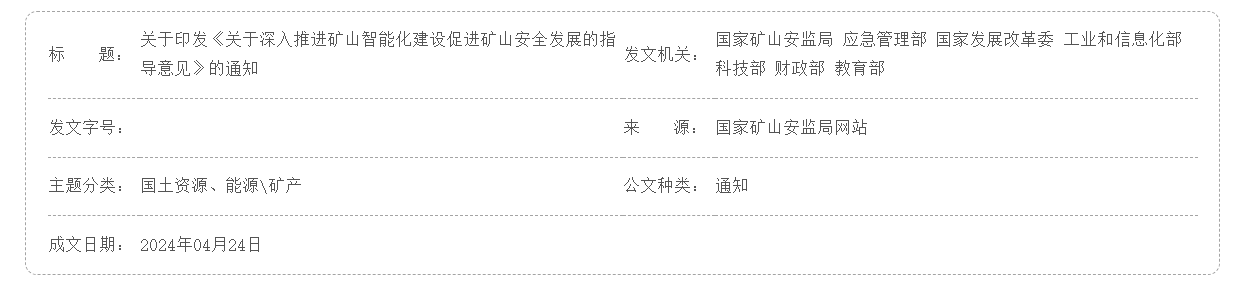關(guān)于印發(fā)《關(guān)于深入推進(jìn)礦山智能化建設(shè)促進(jìn)礦山安全發(fā)展的指導(dǎo)意見》的通知