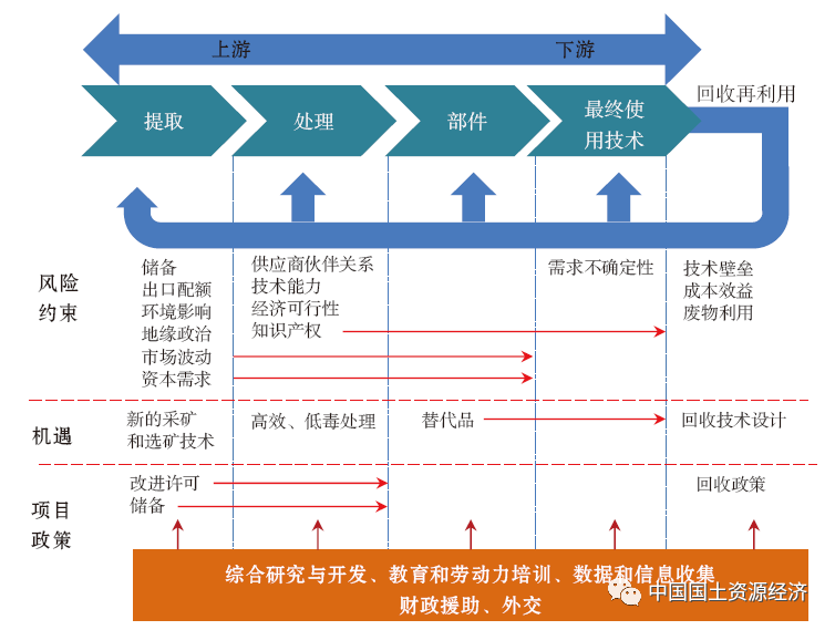 立足國內(nèi),構(gòu)建科學(xué)、可用的地質(zhì)數(shù)據(jù)集,發(fā)現(xiàn)潛在的資源區(qū),確定關(guān)鍵礦產(chǎn)資源潛力的優(yōu)先區(qū),提高關(guān)鍵礦產(chǎn)保障能力。在確保生態(tài)安全前提下,縮減審批流程,加快關(guān)鍵礦產(chǎn)的開發(fā)、利用。加強關(guān)鍵礦產(chǎn)預(yù)警分析,提高研判的精準性、及時性,為關(guān)鍵礦產(chǎn)儲備提供決策支撐。通過技術(shù)創(chuàng)新、產(chǎn)業(yè)升級、價值提升,做精中游生產(chǎn)鏈,拓展下游價值鏈。