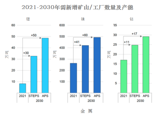 報告的結(jié)論是,要滿足2030年全球凈零碳排放目標,需要新建50多座鋰礦、60多座鎳礦以及17座以上的鈷礦。