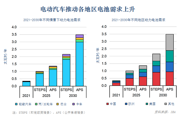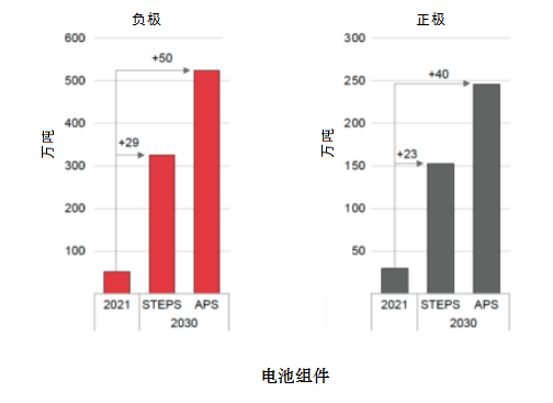 預(yù)測的2020年代末礦產(chǎn)供應(yīng)量與IEA關(guān)于世界能源模型“既定政策情景”(STEPS,Stated Policies Scenario)下的動力電池需求量一致。但是一些礦產(chǎn)比如鋰的供應(yīng)量到2030年需要增長1/3才能滿足同一能源模型中“公開承諾情景”(APS,Announced Pledges Scenarion)下動力電池的需求。