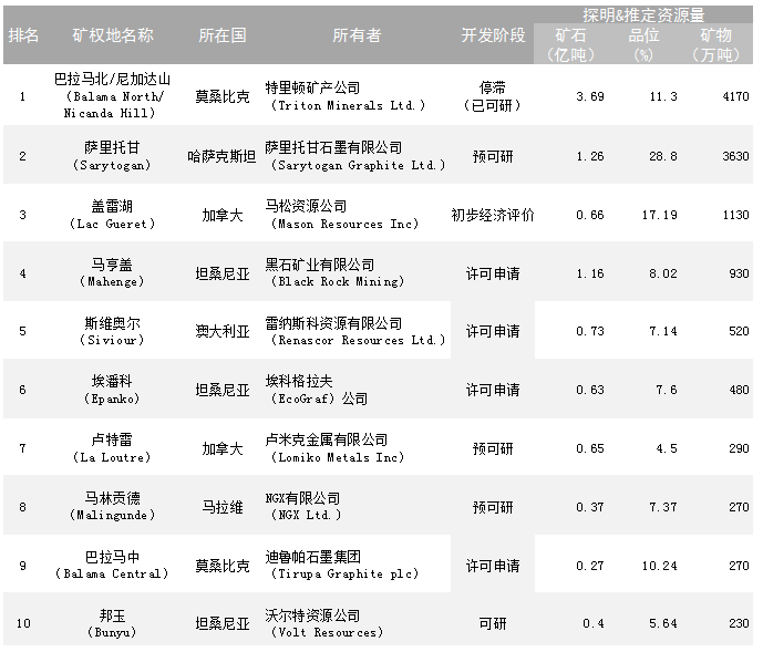 文章來源于:全球地質(zhì)礦產(chǎn)信息系統(tǒng),原文鏈接:全球十大石墨開發(fā)項目