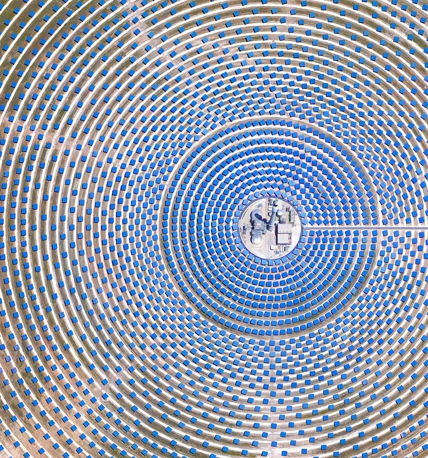 這個位于塞維利亞的太陽能聚光器,使用2650個定日鏡來收集和聚焦太陽的熱能。