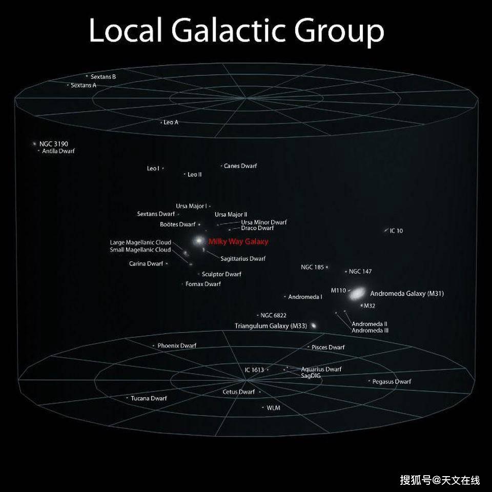 圖解:我們的局部星系群以仙女座和銀河為主,但不可否認(rèn)的是仙女座最大,銀河位居第二,三角座第三,麥哲倫星云第四。 雖然僅16萬(wàn)光年之隔,距離上它是十大星系中離我們最近的星系了。圖源:ANDREW Z. COLVIN