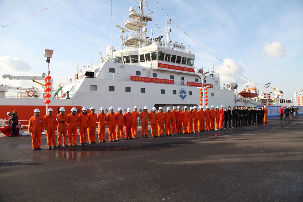 李金發(fā)向全體科考隊(duì)員及家屬致以熱烈的祝賀和誠(chéng)摯的慰問,他指出,“海洋地質(zhì)九號(hào)”入列伊始就肩負(fù)著黨的十九大提出的“加快建設(shè)海洋強(qiáng)國(guó)”的重任,肩負(fù)著自然資源部黨組提出的引領(lǐng)深海探測(cè)國(guó)際科學(xué)前沿的目標(biāo),肩負(fù)著自然資源部中國(guó)地質(zhì)調(diào)查局黨組建設(shè)世界一流新型地質(zhì)調(diào)查局的部署,也肩負(fù)著青島海洋所幾代地質(zhì)調(diào)查工作者的夢(mèng)想。下一階段,要認(rèn)真落實(shí) “一核兩深三系”科技創(chuàng)新戰(zhàn)略,加快實(shí)施局黨組關(guān)于深海探測(cè)的戰(zhàn)略部署,認(rèn)真總結(jié)首年運(yùn)行的經(jīng)驗(yàn),持續(xù)提升船舶管理和運(yùn)營(yíng)水平,不斷創(chuàng)造深海進(jìn)入、深海探測(cè)方面的佳績(jī),為支撐能源、礦產(chǎn)、水和其他戰(zhàn)略資源安全保障,服務(wù)生態(tài)文明建設(shè)和自然資源管理中心工作作出新的更大貢獻(xiàn)。