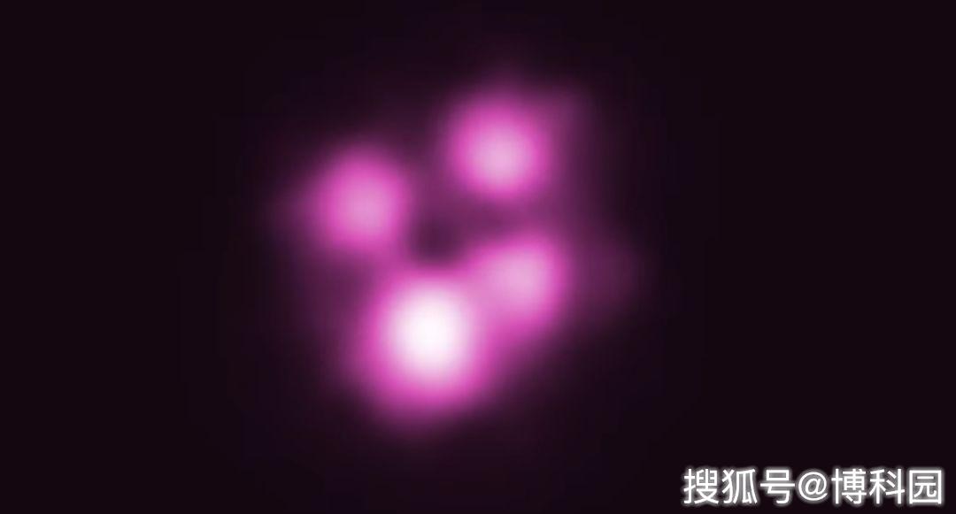 只要對(duì)準(zhǔn)正確的方向,一個(gè)大的物體,比如一個(gè)大星系,所產(chǎn)生的時(shí)空彎曲,就能像愛(ài)因斯坦所預(yù)言的那樣,放大并產(chǎn)生一個(gè)遙遠(yuǎn)物體的圖像。在這項(xiàng)最新研究中,天文學(xué)家利用錢德拉和引力透鏡研究了6顆類星體,每顆類星體都由一個(gè)特大質(zhì)量黑洞組成,該黑洞迅速吞噬了周圍吸積盤中的物質(zhì)。這些類星體的光,通過(guò)一個(gè)星系的引力透鏡作用產(chǎn)生了多個(gè)類星體的圖像。如錢德拉望遠(yuǎn)鏡中四個(gè)目標(biāo)的圖像所示: