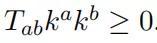 在時(shí)空中,光子的軌跡是一條類(lèi)光曲線(xiàn),這條曲線(xiàn)在時(shí)空中的每一點(diǎn)都有一個(gè)切矢量,記作類(lèi)光矢量(k)。另外,愛(ài)因斯坦的引力方程中,有刻畫(huà)物質(zhì)信息的能量動(dòng)量張量(T)。T是2階張量,可以看成一個(gè)矩陣;而k是一個(gè)矢量,可以看成是一個(gè)列向量。因此,當(dāng)T與兩個(gè)k相乘,得到一個(gè)數(shù)。對(duì)于所有普通的物質(zhì),這個(gè)數(shù)是大于等于0的,這就是類(lèi)光能量條件: