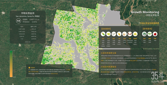 在農(nóng)產(chǎn)品種植方面,大地量子提供種植過程監(jiān)控、產(chǎn)量預(yù)測及市場基本面監(jiān)測等服務(wù)。比如,農(nóng)作物長勢(shì)監(jiān)測和病蟲害監(jiān)測等數(shù)據(jù)產(chǎn)品,讓種植者足不出戶,就能全面持續(xù)地了解農(nóng)作物的生育期、長勢(shì)等關(guān)鍵信息,降低風(fēng)險(xiǎn)的同時(shí)提升管理效率。而農(nóng)作物產(chǎn)量計(jì)算數(shù)據(jù)產(chǎn)品,可以幫助行業(yè)解決信息不透明的問題,建立更好的收入預(yù)期和定價(jià)機(jī)制。