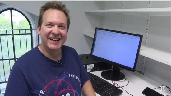今年3月, Andrew Booker 找到了33的立方和整數(shù)解,同樣引起數(shù)學(xué)界轟動。昨天,Andrew Booker穿著印有“42”的T恤接受采訪,解釋了他們的研究過程。