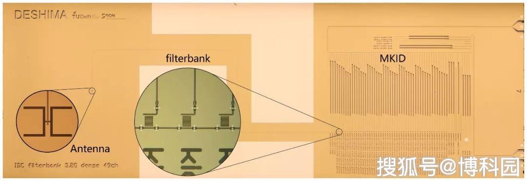 由于不同的分子以不同頻率發(fā)射無線電波,光譜觀察能告訴我們某天體的組成成分。此外,宇宙膨脹降低了測(cè)量到的頻率,而測(cè)量固有頻率的頻移為我們提供了到遙遠(yuǎn)物體的距離。名古屋大學(xué)副教授田村洋一(Yoichi Tamura)表示:目前已有許多具有光譜能力的無線電接收器,但一次觀測(cè)的覆蓋頻率范圍相當(dāng)有限。另一方面,DESHIMA在頻率范圍寬度和光譜性能之間實(shí)現(xiàn)了理想的平衡。在這種獨(dú)特能力背后是創(chuàng)新的納米技術(shù),研究小組開發(fā)了一種特殊的超導(dǎo)電路——濾波器組。