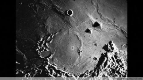美國(guó)人于1966年11月20日發(fā)射的“月球軌道環(huán)行器”2號(hào),在月球表面上發(fā)現(xiàn)了一些像金字塔的建筑物,也有點(diǎn)像華盛頓紀(jì)念碑。它們的建筑角度明顯運(yùn)用了幾何學(xué)原理。排列方式與埃及三座大金字塔頂點(diǎn)的排列方式完全一樣。