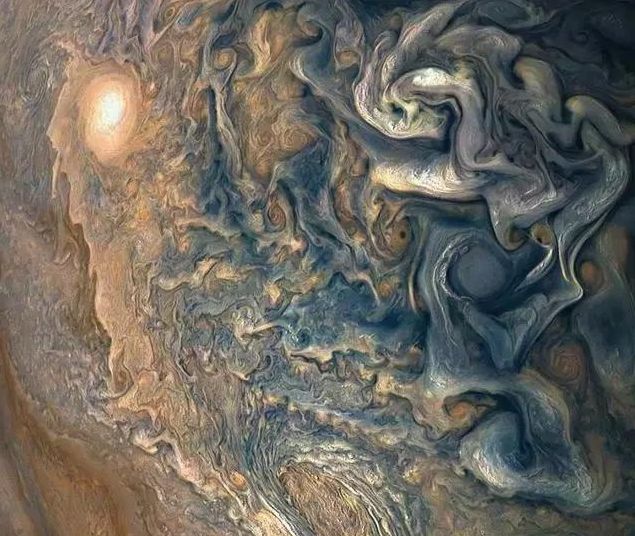 木星到底看起來是美麗的還是恐怖的,對于不同人,可能會有不同的感受。對于地球而言,木星就是一個巨無霸,木星的直徑足足有地球的11倍,木星就像是一個巨大的氫氣球,其大氣組成中約80%都是氫氣,其余幾乎全部都是氦氣,木星的大氣層很厚,從外表層到液態(tài)氫的海洋處,至少延伸了5000公里。如果你近距離看木星,應(yīng)該會看到木星上翻涌的氣流。