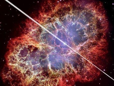 伽馬射線暴是宇宙中發(fā)生的最劇烈的爆炸,理論上是巨大恒星在燃料耗盡時(shí)塌縮爆炸或者兩顆鄰近的致密星體(黑洞或中子星)合并而產(chǎn)生的。伽馬射線暴短至千分之一秒,長(zhǎng)則數(shù)小時(shí),會(huì)在短時(shí)間內(nèi)釋放出巨大能量。如果與太陽(yáng)相比,它在幾秒鐘內(nèi)釋放的能量就相當(dāng)于百億年太陽(yáng)光的能量總和,強(qiáng)大得讓人難以想像。
