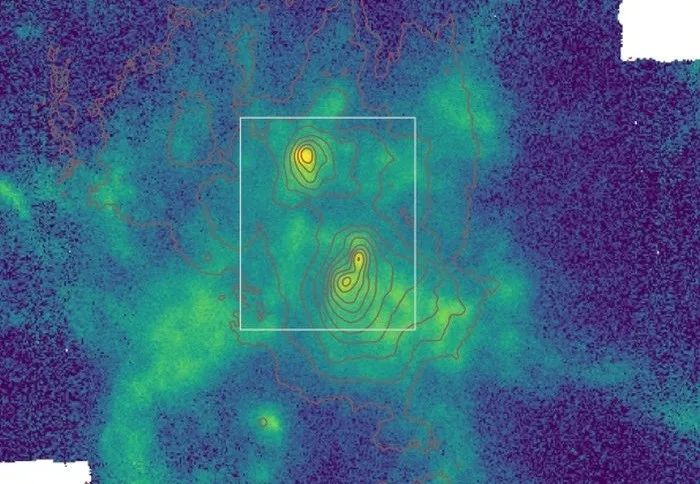 科拉奇尼和他的團(tuán)隊(duì)在最近的研究中,使用了安裝在智利歐洲南部天文臺(tái)直徑超過(guò)8米的超大型望遠(yuǎn)鏡,通過(guò)MUSE 3D光譜儀來(lái)對(duì)NGC 6240星系進(jìn)行了高分辨率的光譜分析,發(fā)現(xiàn)NGC 6240中心位置存在三個(gè)節(jié)點(diǎn)(黑洞)。一個(gè)節(jié)點(diǎn)在圖像的北部,兩個(gè)節(jié)點(diǎn)在圖像的南部,它們被鎖定在一個(gè)小于3260光年的區(qū)域內(nèi),南部?jī)蓚(gè)僅相距645光年。