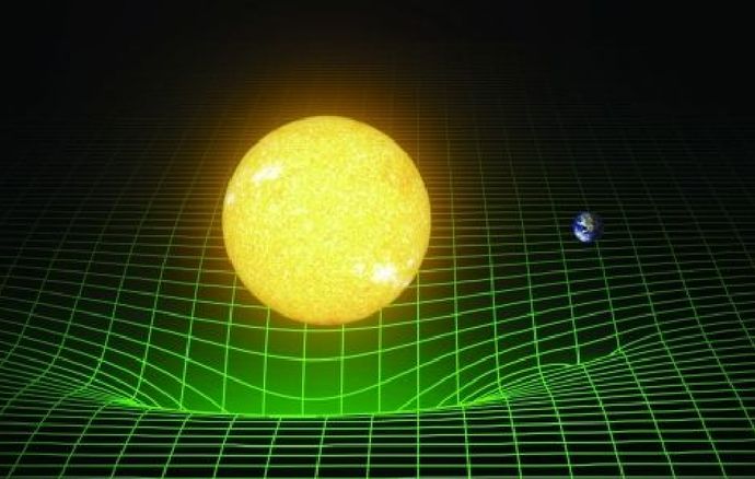 但是引力可以彎曲光線(xiàn),為什么光會(huì)彎曲?愛(ài)因斯坦對(duì)這一觀(guān)點(diǎn)有嚴(yán)重懷疑。因?yàn)楣獾淖疃搪窂,在彎曲的空間里,光的最短路徑看起來(lái)像一條曲線(xiàn),就像我們?cè)谇蛏系膬牲c(diǎn)之間畫(huà)一條最短的線(xiàn),它看起來(lái)像一條曲線(xiàn)。為了建立相對(duì)論,愛(ài)因斯坦提前幾年學(xué)習(xí)了微分幾何。愛(ài)因斯坦認(rèn)為所有質(zhì)量物體都有能量,能量會(huì)使它們周?chē)目臻g變形,速度也會(huì)扭曲時(shí)間。在這個(gè)扭曲的時(shí)空里,傳統(tǒng)的歐幾里德幾何學(xué)幾乎是無(wú)用的。