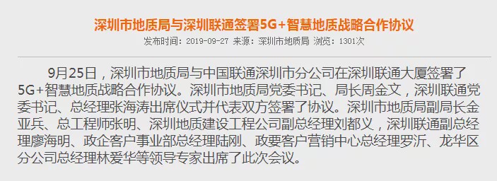 深圳市地質局不斷探索基于5G技術的地質領域創(chuàng)新應用,實現云技術平臺開發(fā)、感傳智能四方面研究和傳感器設備改進、研制,打造專家型、AI智能化下一代平臺