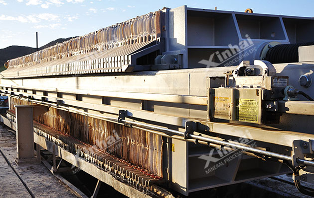 廂式壓濾機(jī)主要有五大部分組成:機(jī)架部分、自動拉板部分、過濾部分、液壓部分和電器控制部分。廂式壓濾機(jī)被廣泛運(yùn)用于尾礦干排中,其優(yōu)越性在于正壓、高壓強(qiáng)脫水,濾餅水分低,能耗少。使用廂式壓濾機(jī)處理尾礦后的濾液清澈透明,可達(dá)到環(huán)保廢水直接排放要求,過濾后干渣含水率達(dá)到8%以下,大大降低尾礦輸送成本及尾礦干堆的風(fēng)險。
