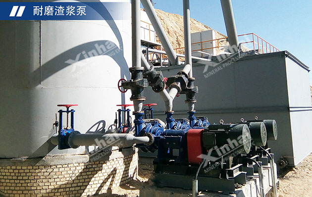 尾礦干排工藝流程中,渣漿泵是一種必不可少的尾礦礦漿輸送設(shè)備,其作用是把礦漿運(yùn)送至水力旋流器和廂式壓濾機(jī)中。渣漿泵內(nèi)襯采用耐磨橡膠,不僅增強(qiáng)了自身的耐磨性能,而且保證了旋流器組和壓濾機(jī)處于良好的工作狀態(tài),延長渣漿泵使用壽命。