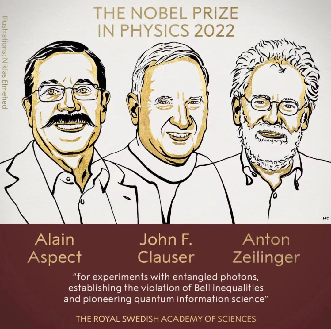 北京時(shí)間10月4日17:45,在瑞典首都斯德哥爾摩,瑞典皇家科學(xué)院宣布,將2022年諾貝爾物理學(xué)獎(jiǎng)授予法國物理學(xué)家阿蘭·阿斯佩(Alain Aspect)、美國理論和實(shí)驗(yàn)物理學(xué)家約翰·弗朗西斯·克勞澤(John F. Clauser)和奧地利科學(xué)家安東·塞林格(Anton Zeilinger),以表彰他們?cè)诹孔有畔⒖茖W(xué)研究方面作出的貢獻(xiàn)。