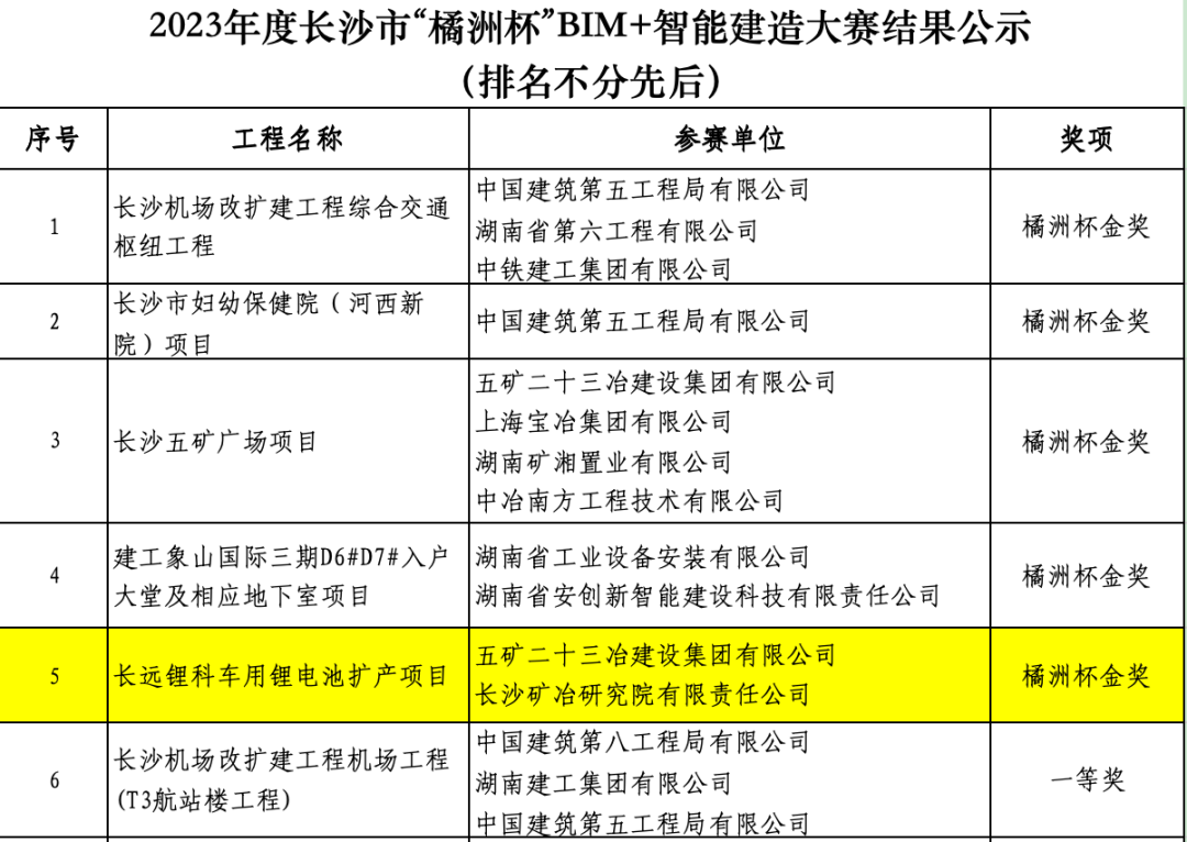 近日,2023年長(zhǎng)沙市“橘洲杯”首屆BIM+智能建造大賽落下帷幕,長(zhǎng)沙礦冶院承擔(dān)的長(zhǎng)遠(yuǎn)鋰科車用鋰電池?cái)U(kuò)產(chǎn)項(xiàng)目在大賽中脫穎而出,榮獲“橘洲杯金獎(jiǎng)”。