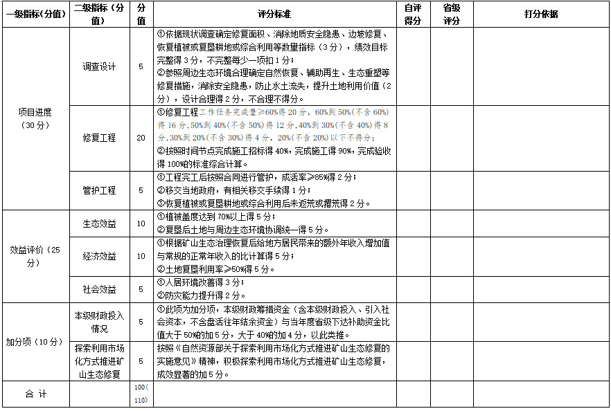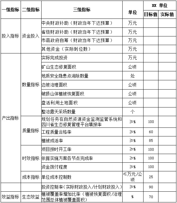 四川省歷史遺留廢棄礦山生態(tài)修復(fù)資金年度績效考評表
