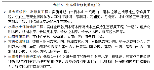 扎實(shí)開(kāi)展生態(tài)系統(tǒng)保護(hù),生態(tài)文明示范創(chuàng)建取得突破。劃定生態(tài)保護(hù)紅線,嚴(yán)格基本生態(tài)控制線內(nèi)監(jiān)管。開(kāi)展陸域生態(tài)系統(tǒng)調(diào)查評(píng)估,打造“空天地”一體化城市生態(tài)監(jiān)測(cè)網(wǎng)絡(luò)。開(kāi)展生物多樣性保護(hù),建成全省首條野生動(dòng)物保護(hù)生態(tài)廊道。積極推動(dòng)生態(tài)修復(fù),深圳灣濱海紅樹(shù)林濕地生態(tài)修復(fù)項(xiàng)目榮獲“廣東省首屆國(guó)土空間生態(tài)修復(fù)十大范例”稱號(hào)。不斷優(yōu)化城市生態(tài)空間,建成國(guó)家森林城市,全市公園總數(shù)達(dá)1206個(gè),公園綠地500米服務(wù)半徑覆蓋率達(dá)到90.87%。大力推進(jìn)生態(tài)文明示范創(chuàng)建,全市10個(gè)區(qū)先后獲評(píng)“國(guó)家生態(tài)文明建設(shè)示范區(qū)”,南山區(qū)成功創(chuàng)建“綠水青山就是金山銀山”實(shí)踐創(chuàng)新基地,深圳成為全國(guó)唯一獲評(píng)“國(guó)家生態(tài)文明建設(shè)示范市”的副省級(jí)城市。