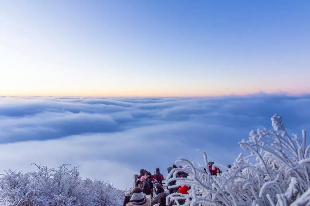 屏氣凝神,駐足遠(yuǎn)望,迎接峨眉金頂?shù)谝豢|晨光