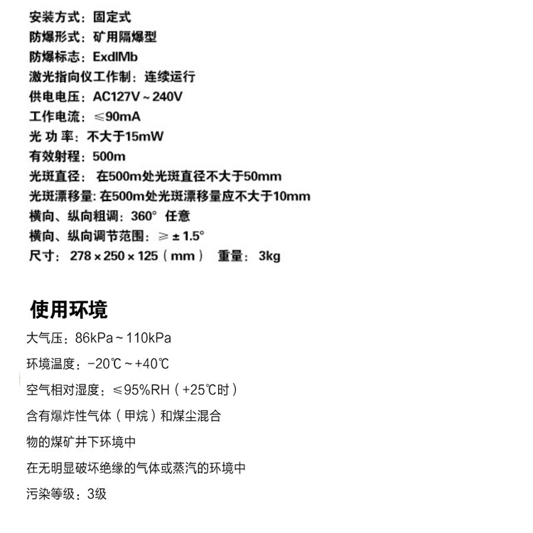 儀器主要用于煤礦井下巷道開采時提供中腰線確準定位、運輸管道、運輸皮帶、風管、水管、電纜鋪設(shè)等方向定位。還可為地鐵、公路、鐵路、橋梁、隧道、涵洞、輸油管道鋪設(shè)、排水施工等巷道掘進提供準直線。