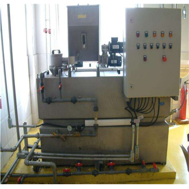 聚合物溶液制備過程是通過各個溶液箱逐步處理完成的,由控制箱自動控制,加藥數(shù)量與水量均可準(zhǔn)確調(diào)定,可將溶液中的總?cè)芙夤绦挝锟刂圃谠O(shè)定的范圍內(nèi)。
