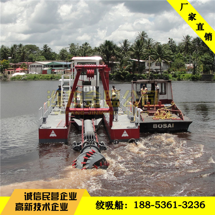 淘金船、淘金設備選礦經滾筒篩篩分后,5mm~15m的礦物料進入大顆粒金選礦槽內選礦,調整好溜槽的角度、水流速,用進口三菱金氈回收大顆粒金。