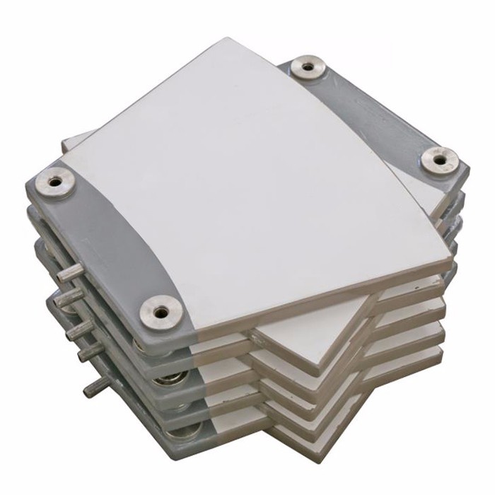 陶瓷過濾板是陶瓷過濾機的核心組成部件,屬多孔功能陶瓷新型材料,在其內(nèi)部布滿了縱橫交錯、互相貫通的毛細微孔(直徑約1~10微米),他們就是濾液(水)的通道,這一組成部分叫做板基層。陶瓷過濾板的組成成分有剛玉、碳化硅等材質(zhì)。