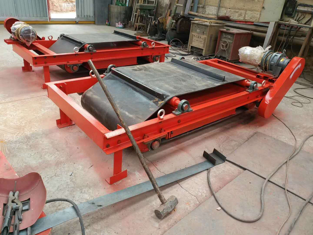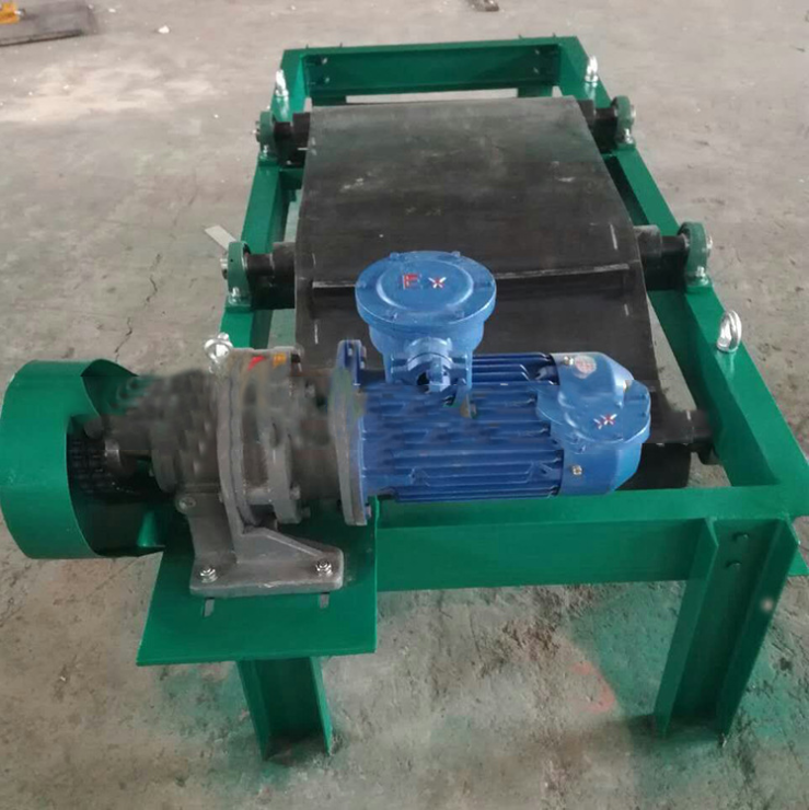 除鐵器本體磁路設(shè)計合理,磁場強度高、透磁深度大,故適合料層較厚的場合除鐵。又因采用全密封結(jié)構(gòu),制造過程中經(jīng)真空干燥等特殊工藝處理,所以能有效地防止粉塵和有害氣體對線圈侵蝕,對環(huán)境和氣候的適應(yīng)性強,使用壽命長。RCDD系列自冷式自缷電磁除鐵器,是在RCDB系列自冷懸掛式電磁除鐵器的基礎(chǔ)上增加了驅(qū)動電機、滾筒、帶刮板的缷鐵膠帶等組成的缷鐵機構(gòu)。在工作過程中缷鐵機構(gòu)自動將缷鐵皮帶上吸附的鐵磁性物質(zhì)拋到除鐵器以外的集鐵箱內(nèi),無需停電人工清理,實現(xiàn)了除鐵自動化。在鋼鐵廠、水泥廠多用于礦渣除鐵和保護輥壓機、立磨、破碎機等重要設(shè)備。