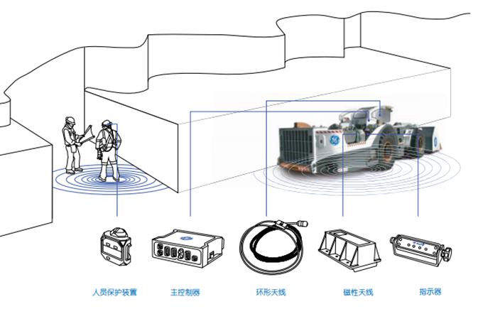 該系統(tǒng)通過電磁信號在車輛周圍設(shè)定警告區(qū)域和危險(xiǎn)區(qū)域,人員接近警告區(qū)域時(shí)設(shè)備發(fā)出聲光報(bào)警,當(dāng)人員接近危險(xiǎn)區(qū)域時(shí)車輛緊急制動(dòng)以免造成人員事故。