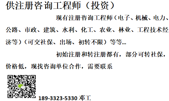 我司可提供注冊咨詢師,專業(yè)有:建筑、市政、公路、水利、農業(yè)、工程技術經濟、