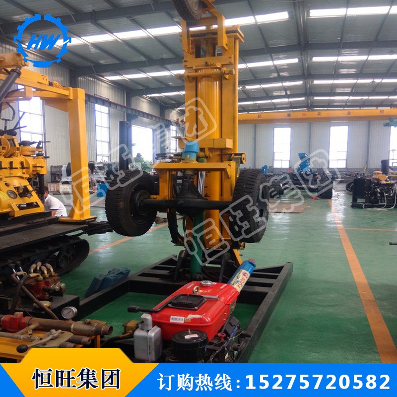 HQZ系列水井鉆機(jī)是一種輕型、高效、多功能的鉆鑿孔設(shè)備,它主要適用于鉆鑿水井、農(nóng)業(yè)灌溉井、地?zé)峥照{(diào)孔及其他用途的井孔,尤其適用于山區(qū)和巖石地層的取水工程。該鉆機(jī)可在不同地層上進(jìn)行穿鑿工作,鉆孔直徑可達(dá)254mm。該鉆機(jī)采用新型液壓技術(shù),配套大扭矩液壓馬達(dá)回轉(zhuǎn)以及大缸徑液壓油缸推進(jìn),名廠多缸發(fā)動(dòng)機(jī)為液壓系統(tǒng)提供動(dòng)力,兩級(jí)空濾以及空壓機(jī)進(jìn)氣設(shè)計(jì),延長(zhǎng)柴油機(jī)的使用壽命。獨(dú)特的泵組設(shè)計(jì)方便維修,降低維修成本。集中控制的液壓操縱臺(tái),方便操作。該系列鉆機(jī)采用挖掘機(jī)履帶底盤,越野性能強(qiáng)。獨(dú)立的模塊設(shè)計(jì),可使鉆機(jī)裝在卡車上,增加其機(jī)動(dòng)性。兩檔回轉(zhuǎn)和推進(jìn)速度可滿足在土層和巖層的不同穿鑿需要。組合式的定位器,可根據(jù)不同型號(hào)的鉆桿和沖擊器進(jìn)行調(diào)整更換定位盤,保證定位定心準(zhǔn)確、可靠。卷?yè)P(yáng)機(jī)構(gòu)方便鉆桿和沖擊器的吊裝,降低勞動(dòng)強(qiáng)度。