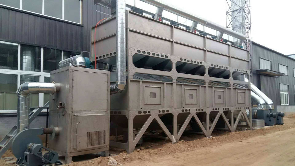 根據(jù)吸附(效率高)和催化燃燒(節(jié)能)兩個基本原理設(shè)計,采用雙氣路連續(xù)工作,一個催化燃燒室,兩個吸附床交替使用。先將有機(jī)廢氣用活性炭吸附,當(dāng)快達(dá)到飽和時停止吸附,然后用熱氣流將有機(jī)物從活性炭上脫附下來使活的熱能,達(dá)到節(jié)能的目的。再生后的可進(jìn)入下次吸附;在脫附時,凈化操作可用耗電量小,催化燃燒室采用蜂窩陶瓷狀為載體的貴金屬催化劑,阻力小,活性高。當(dāng)有機(jī)廢氣濃度達(dá)到2000mg/h以上時,可維持自燃