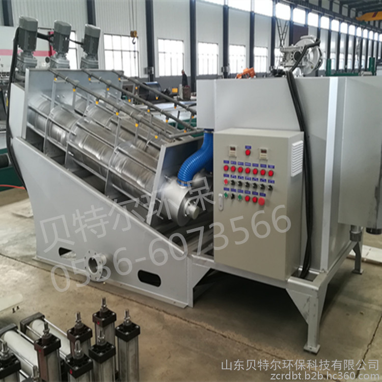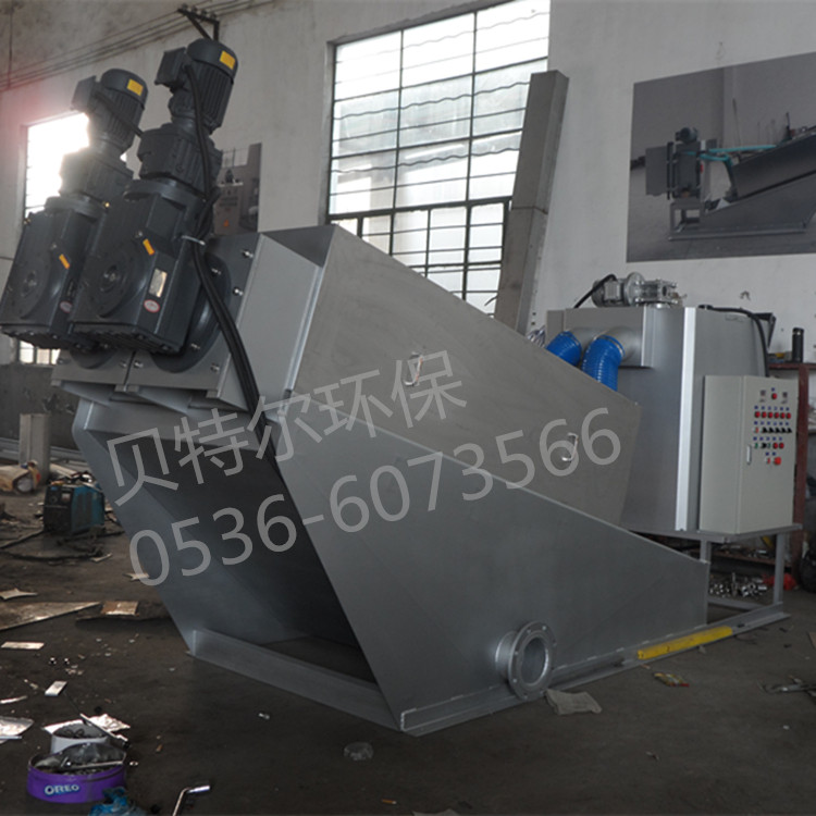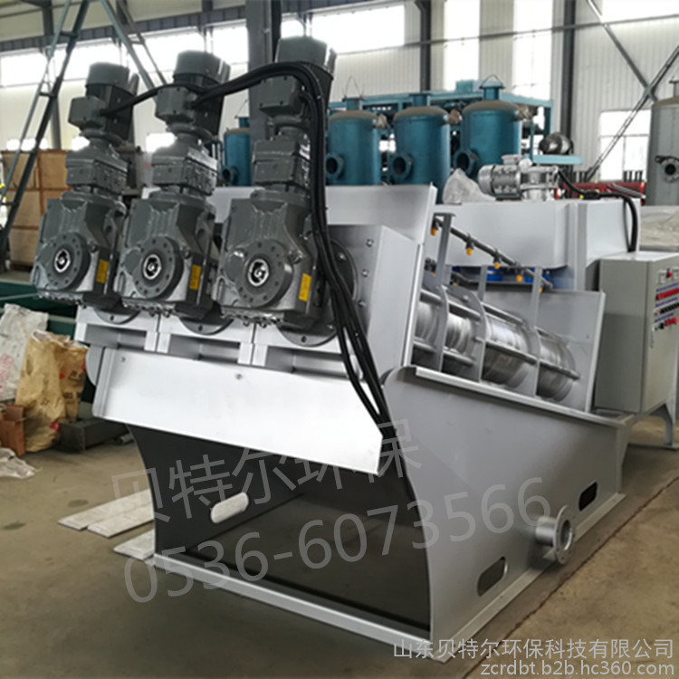 1、濃縮:當螺旋推動軸轉動時,設在推動軸外圍的多重固活疊片相對移動,在重力作用下,水從相對移動的疊片間隙中濾出,實現快速濃縮。